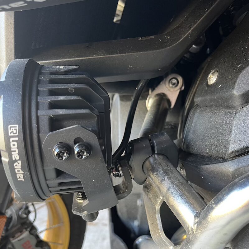 Ils sont fixés sur l’avant de la moto, sur les supports d’origine de la R1300GSA (visibles sur plusieurs des photos précédentes)