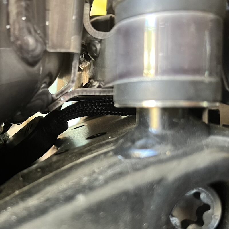 Puis il est derrière le cache qui est en-dessous du réservoir, puis celui des radiateurs avant de déboucher juste au niveau des crash bars.