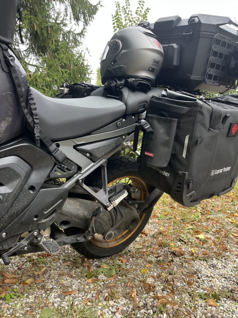 Je n’avais eu que des valises rigides depuis des GiviE41 sur mes DL650, puis les OEM sur la XTZ1200, puis sur la R1250GSA (photos plus bas dans l’article).
