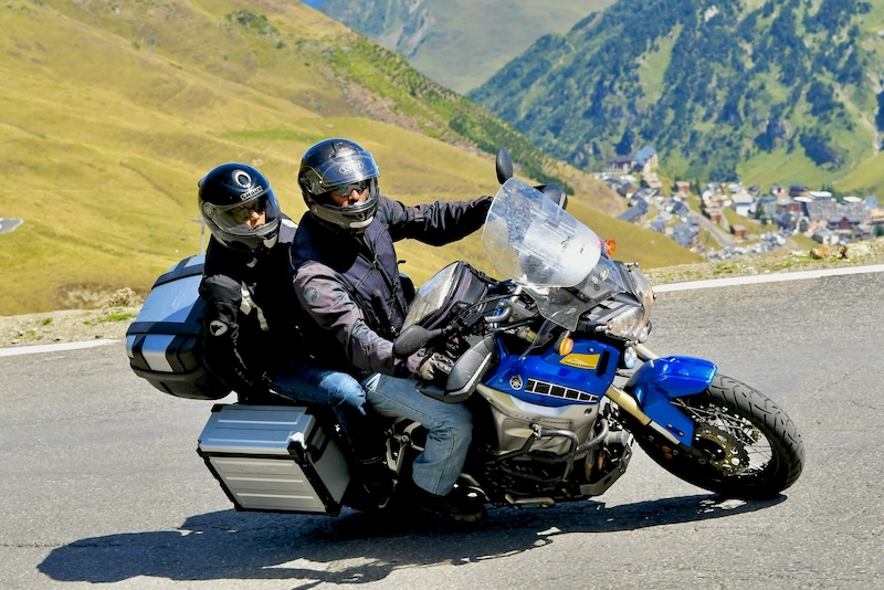 Seconde utilisation, sur la selle passager en complément du topcase pour une semaine dans les Pyrénées :